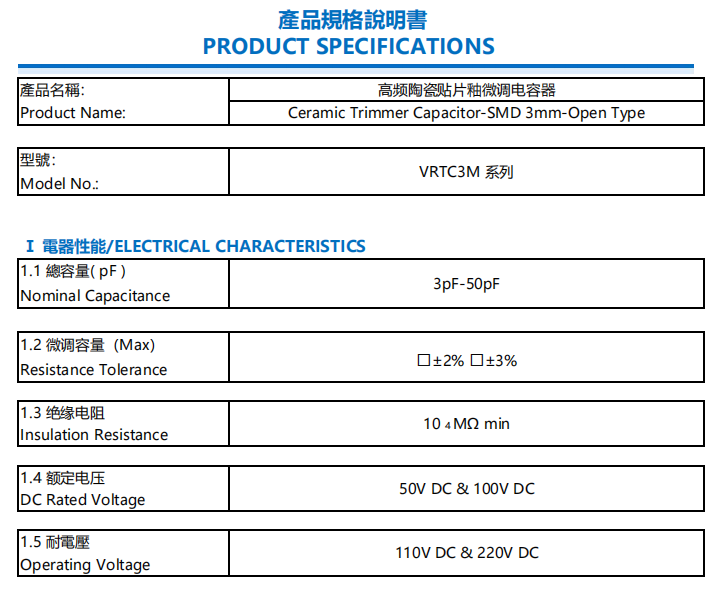 VRTC3ME50-T1 (褐色50PF 14P-50P)