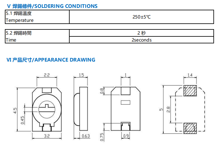 贴片可调电容,尺寸为3.2*4.5*1.85mm(俗称国产3*4mm系列可调电容或微调电容器)