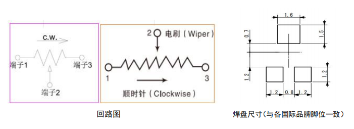 下图是微动可调的脚位焊接图,此焊接位与北陆,帝国,BOURNS,村田,松下品牌的焊接脚位均为一致,即表明,可通用于如上这些品牌。